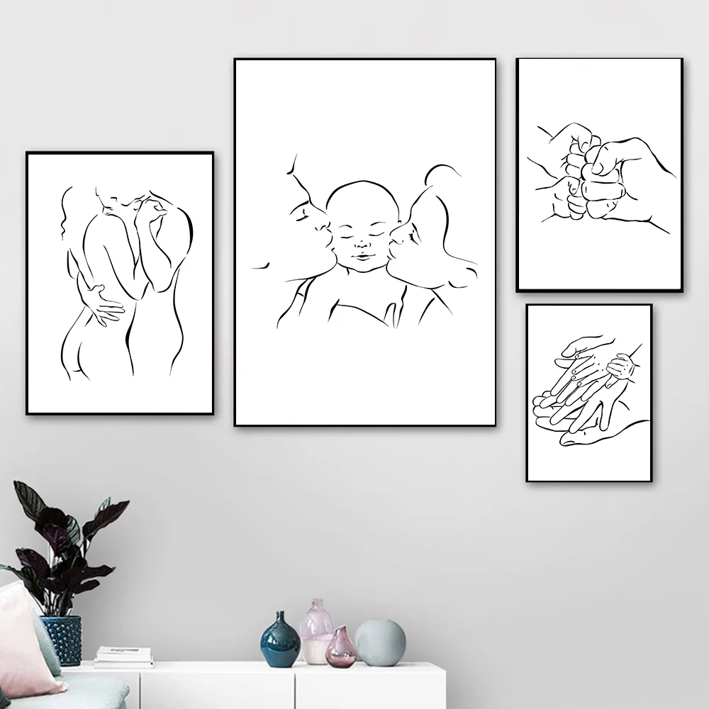 Family Portrait Mom Dad Baby Art Line Drawing Posters Abstract Minimalist Wall Canvas Print Painting Couple In Love Pictures Painting Calligraphy Aliexpress